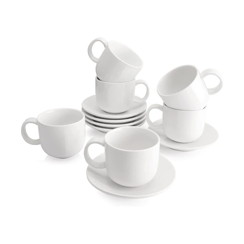 These Porcelain Cappuccino Cups with Saucers are perfect for a cafe latte, cappuccino, Americano, hot chocolate, mochaccino, tea, or your favorite beverages.