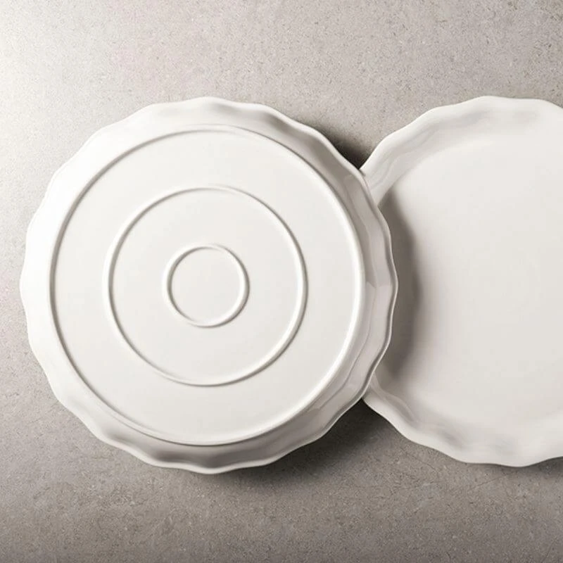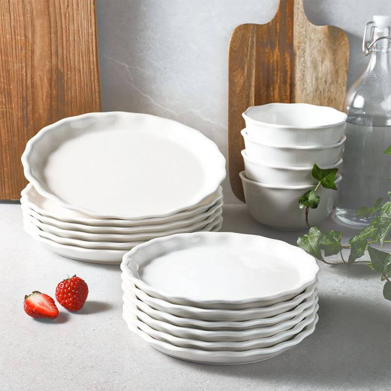 The ruffled edgeΒ like that blooming flowers can hold your delicious moment.Β These all-white plates add an elegant touch to your table.
