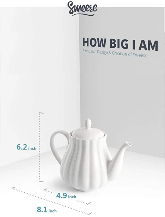 The teapot is PROUDLY FDA approved and made of durable porcelain, a type of premium LEAD-SAFE ceramic, chip-resistant, and more sturdy than stoneware. The pumpkin shape design is very classical. The larger handle is easy to hold. Elegant enough for entertaining or everyday use.